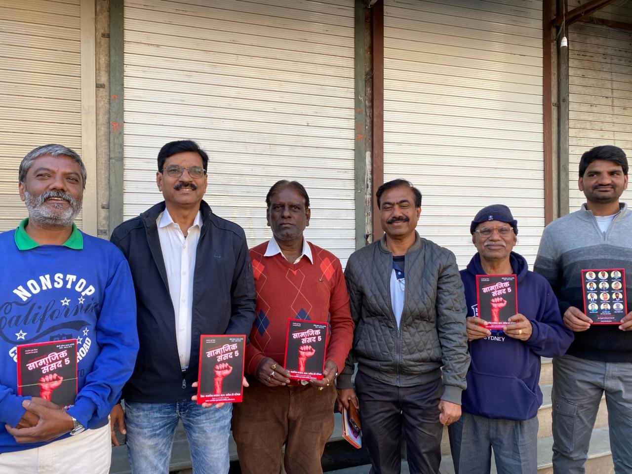 सामाजिक संसद 6 कार्ड का विमोचन करते वाल्मीकेय टीम के साथी